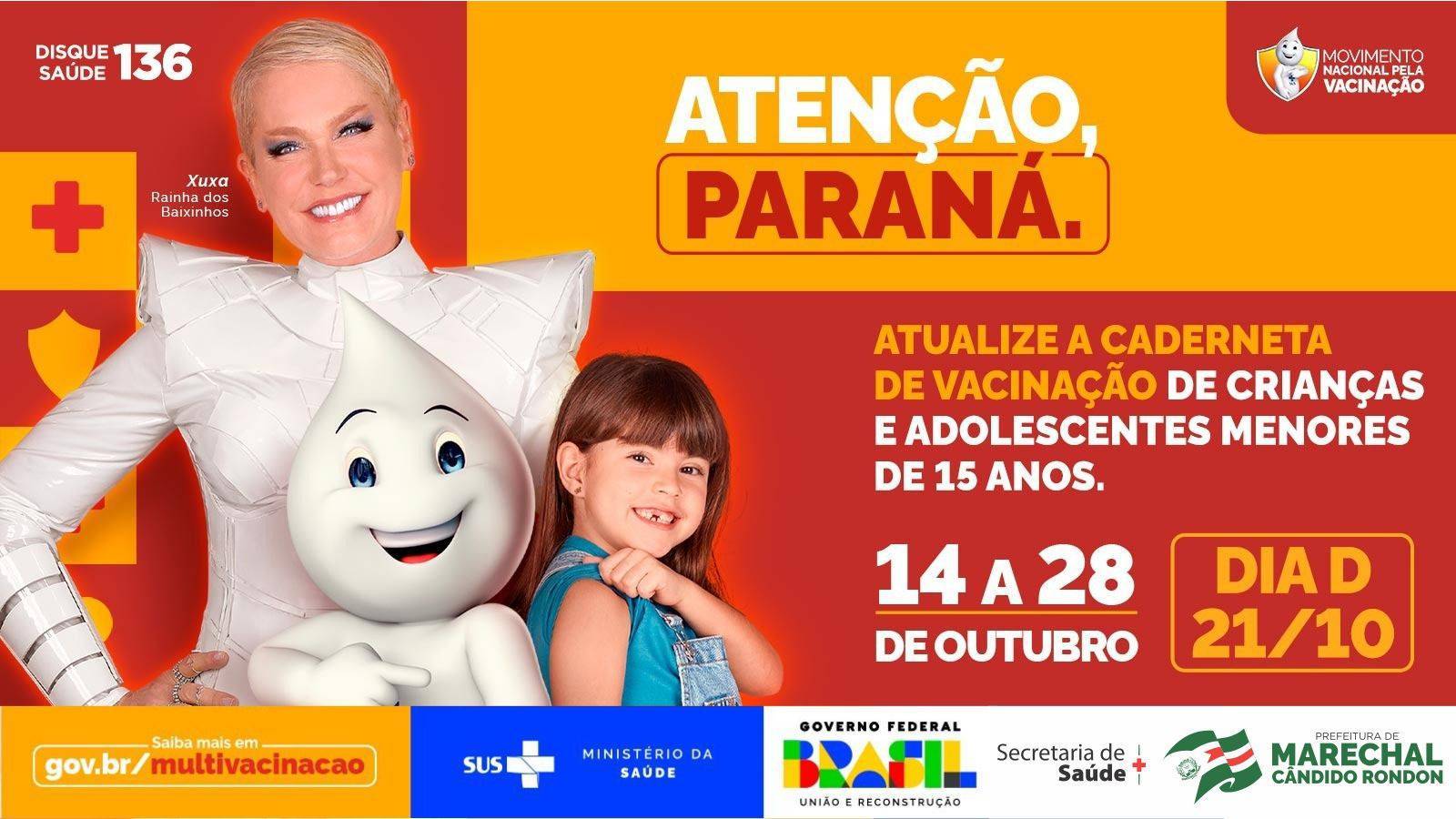 No dia 21 de outubro irá ocorrer em Marechal Cândido Rondon o dia D de mobilização para multivacinação,