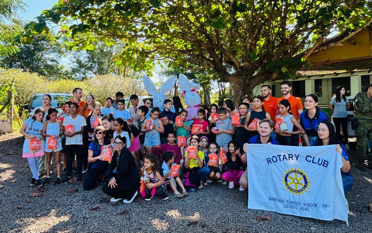 Juntamente com a Secretaria de Assistência Social, do Hospital do Dente, da Cresol e do Batalhão de Fronteira o club proporcionou uma Páscoa diferente para as crianças do CAF - Centro de Apoio à Família de Marechal Cândido Rondon.