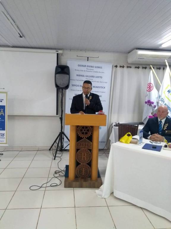 Ao assumir a Presidência do Rotary Club Marechal Cândido Rondon, Gilmar Divino Gomes, bateu o sino pela primeira vez e mencionou o lema “O Rotary Conecta o Mundo”, que norteará o novo Ano-Rotário, e regeu um admirável momento, exaltando a importância do mesmo, destacando o trabalho em equipe. Mencionou sua honra e o desafio em conduzir o Rotary Club Marechal neste Ano-Rotário. Parabenizou a Ex-Presidente Grasielly pela habilidade na gestão do clube. Agradeceu sua família e aos companheiros pela confiança na sua pessoa para o novo cargo que neste ato assume. Afirmou que pretende dar continuidade aos projetos, procurando sempre inovar. Logo em seguida, Gomes deu posse ao Conselho Diretor.