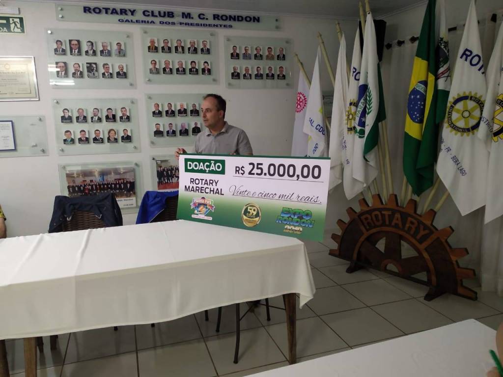 “Os sorrisos proporcionados durante a Expo Rondon continuam”, exalta o diretor da Fundação Promotora de Eventos (Proem), Anderson Loffi, após o repasse de R$ 25 mil para o Rotary Club Marechal Cândido Rondon. A doação já realizada nos anos anteriores a entidades do município, enaltece o desenvolvimento dos projetos.