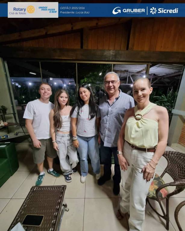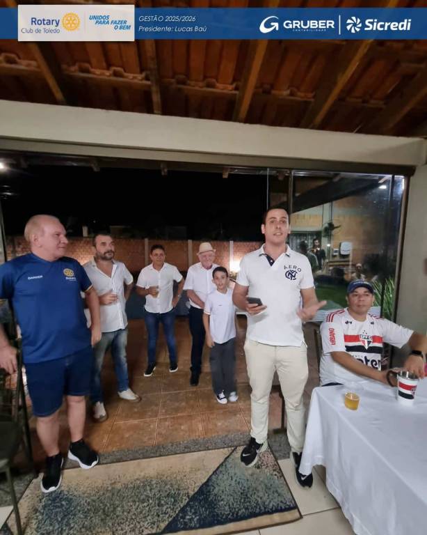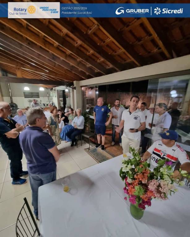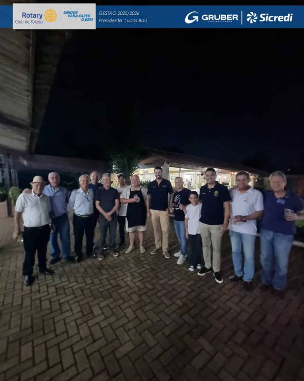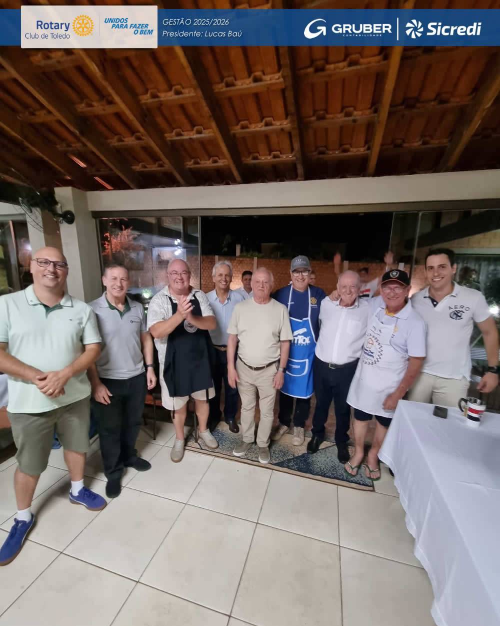 Na noite do dia 26 de fevereiro de 2026, os companheiros do Rotary Club de Toledo reuniram-se na chácara do companheiro Adalberto Bordignon, em um ambiente acolhedor e preparado com carinho para proporcionar uma noite especial de companheirismo e amizade.